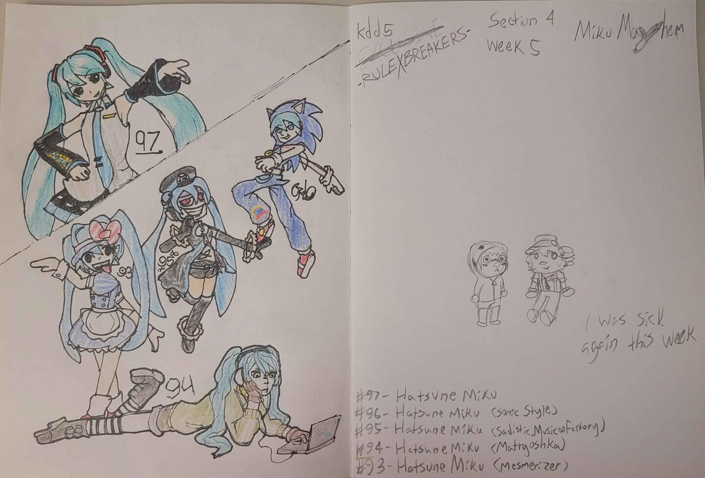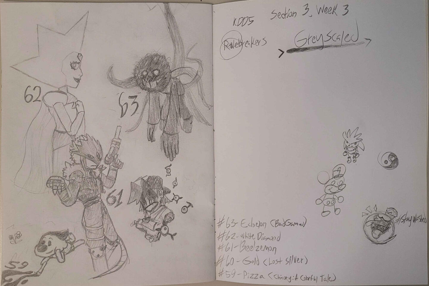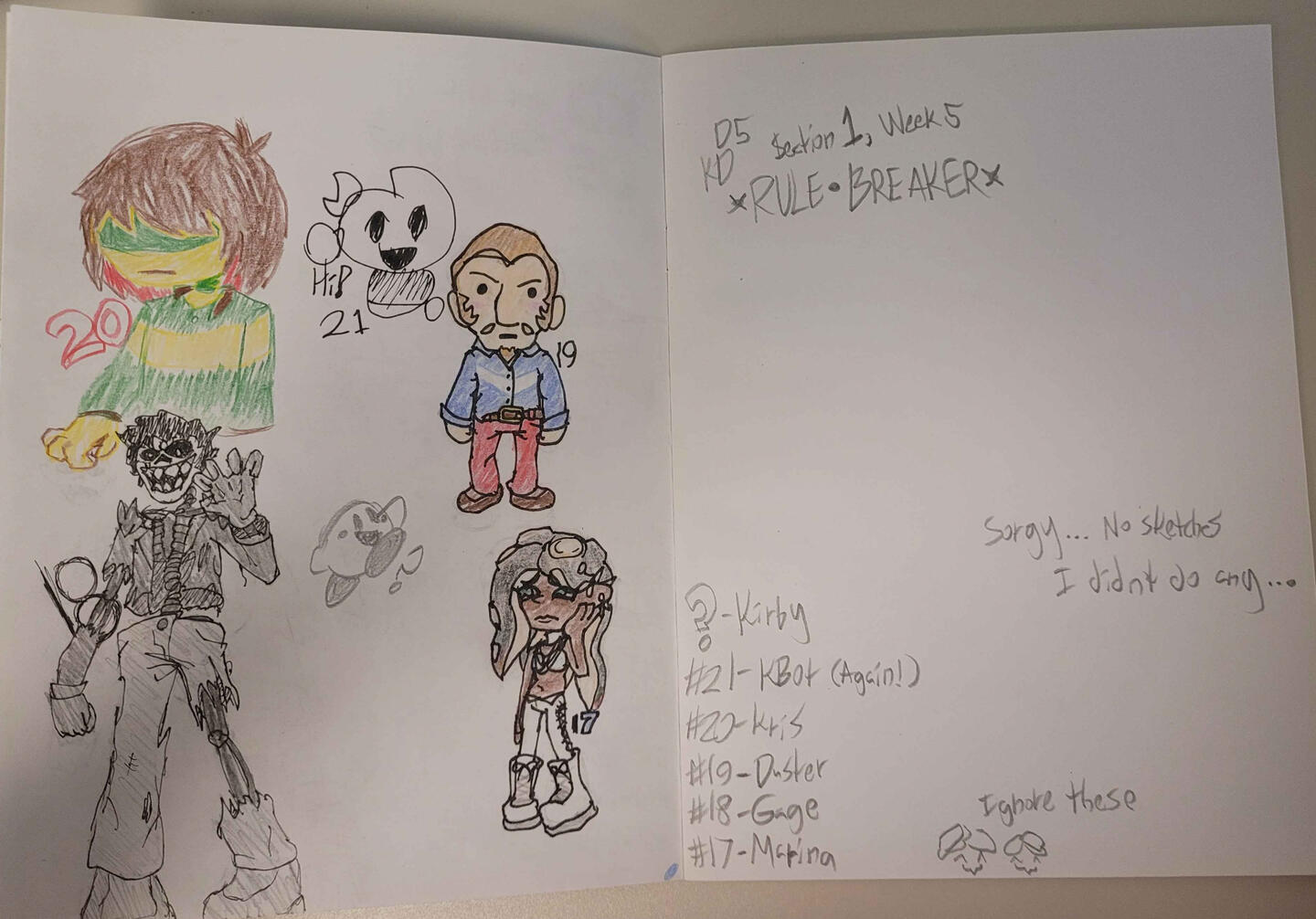 The KDD Series was, like the title states, a daily-entry drawing series. The series revolved around my school calendar: One drawing at the end of every school day. Spanning from the 8th Grade all the way until the day of graduation, the series would only stop if school was out, only being delayed at most if sickness was to come around.